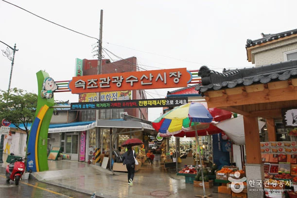 시설규모는 지하 1층, 지상 2층(연면적 15,436㎡), 449개 점포를 갖추고 있으며, 지하 1층은 수산물 판매 및 횟집, 지상 1,2층은 일반 도·소매업(식품 및 의류상가 등)으로 구성되어 있다. 속초관광수산물시장은 쇼핑카트를 비치함은 물론 고객쉼터와 수유실, 무인민원발급기, 간이쉼터, 350대 동시 주차 가능한 대형주차장 등을 마련해 고객편의를 제공하고 있다. 출처 : 대한민국구석구석(korean.visitkorea.or.kr) → 펜션에서 약 9.9km, 차로 약 21분 거리